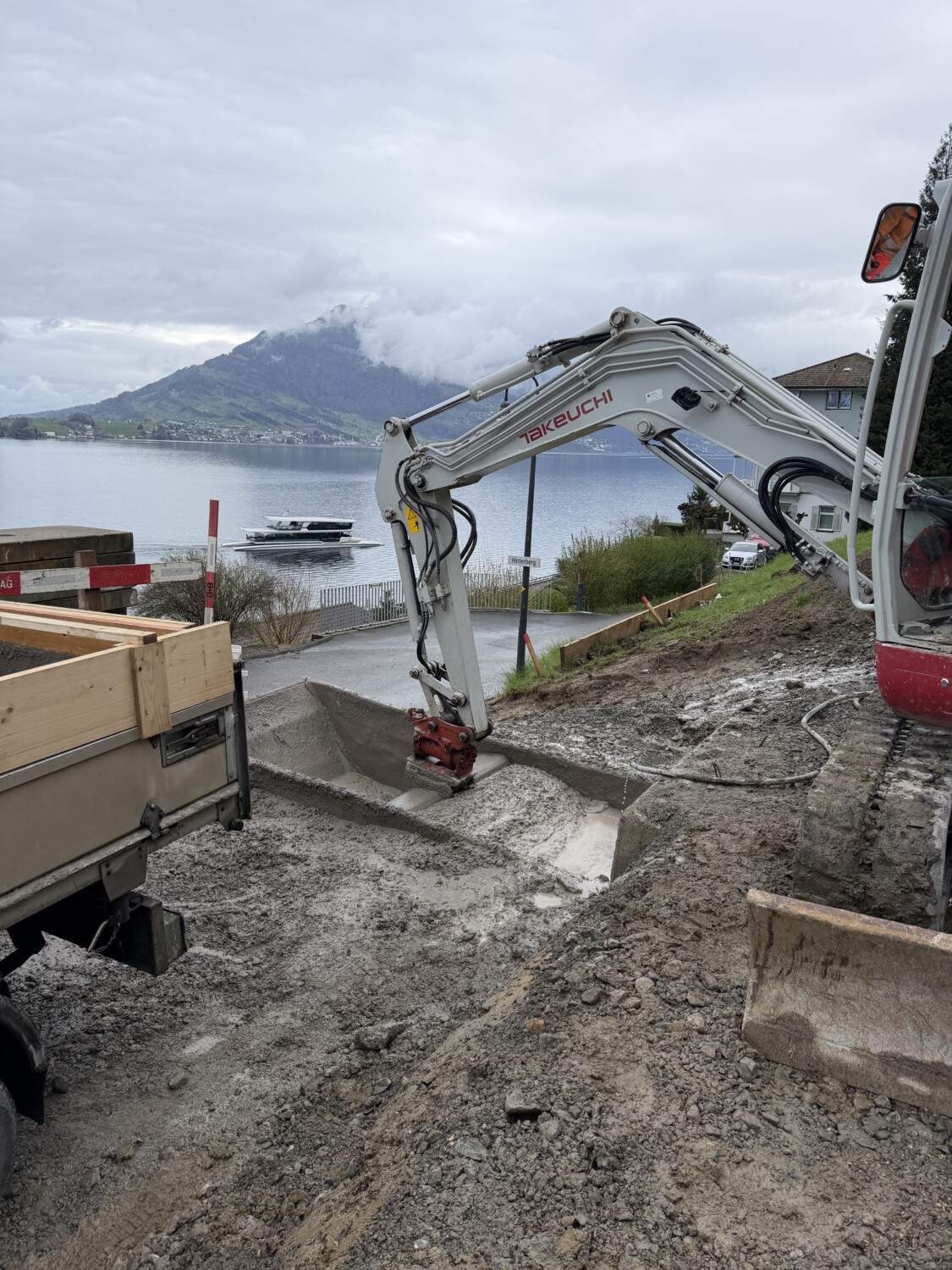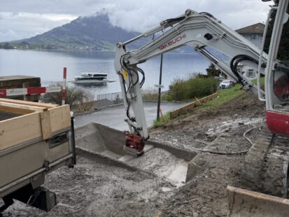 Eine etwas abgelegene, nicht so gut zugängliche Baustelle, 4 km entfernt von unserem Betonmischer.